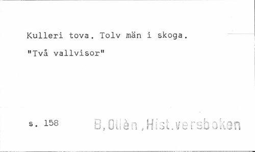 //// Kulleri tova. Tolv män i skoga. "Två vallvisor" //// iss b,Ollen,Hist.versboken ////