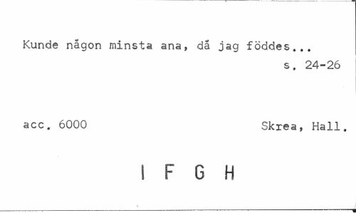 //// Kunde någon minsta ana, då jag föddes... //// s, 24-26 //// acc. 6000 Skrea, Hall. //// I F G H ////