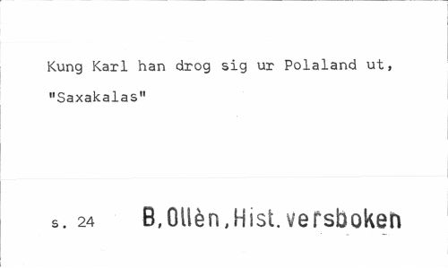 //// Kung Karl han drog sig ur Polaland ut, "Saxakalas" //// s. 24 B,Öllén,Hist.versboken ////