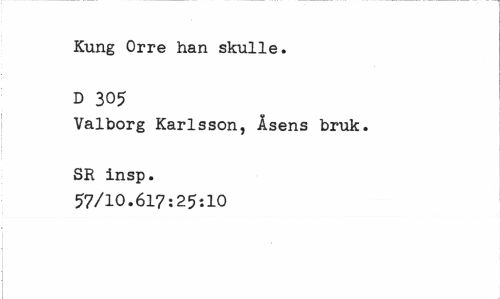 //// Kung Orre han skulle. D 305 //// Valborg Karlsson, Åsens bruk. //// SR insp. 57/10.617:25:10 ////
