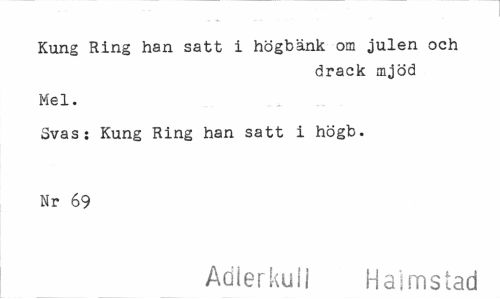 //// Kung Ring han satt i högbänk om julen och //// drack mjöd //// Mel. //// Svas: Kung Ring han satt i högb. Nr 69 //// Adlerkull Halmstad ////