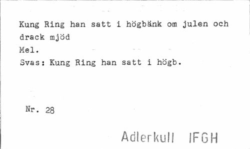 //// Kung Ring han satt i högbänk om julen och //// drack mjöd //// Mel. //// Svas: Kung Ring han satt i högb. Nr. 28 //// Adlerkull JFGH ////