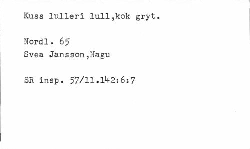 //// Kuss rulleri lull,kok gryt. //// Nordl. 65 //// Svea Jansson,Nagu //// SR insp. 57/11.1^2:6;7 ////