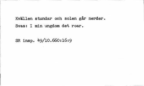 //// Kvällen stundar och solen går nerder. Svas: I min ungdom det roar. //// SR insp. 49/10.660:16:9 ////