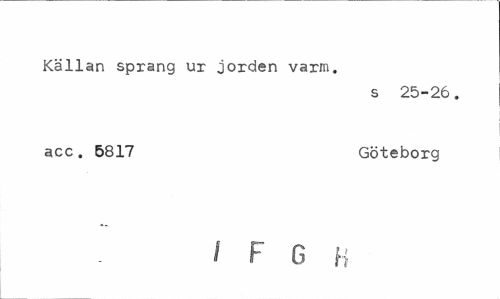//// Källan sprang ur jorden varm. //// s 25-26. //// acc. 5817 Göteborg //// i F 6 B ////