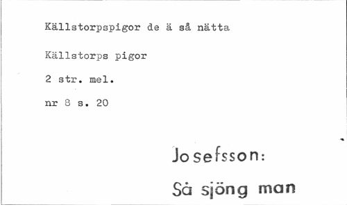 //// Källstorpspigor de ä så nätta //// Källstorps pigor 2 s tr. me 1. nr 8 s. 20 //// Jo sefsson: Sa sjöng man ////