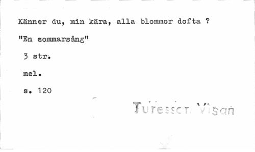 //// Känner du, min kära, alla blommor dofta ? "En sommars äng" 3 str. mel. s. 120 //// T» //// . uressc r : Bon ////