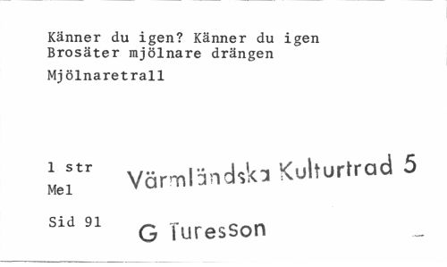 //// Känner du igen? Känner du igen Brosäter mjölnare drängen //// Mjölnaretrall //// l3" Värmländsk Kulturtrad 5 sid 91 G Turesson ////