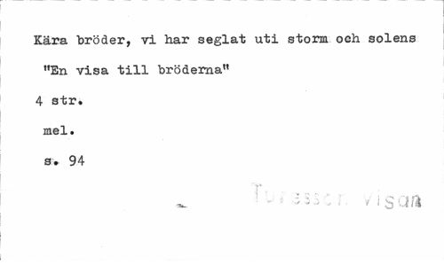 //// Kära "bröder, vi har seglat uti stona och solens //// "En visa till bröderna" 4 str. mel. b. 94 //// - -• ? i sa fö ////