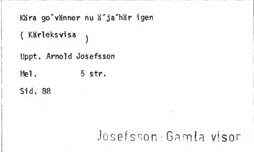 //// Kära gcTvänner nu ä"ja'här igen ( Kärl eks vi sa ^ //// Uppt. Arnold Josefsson Mel. 5 str. //// Sid. 88 //// Josefsson ¦ Gamla visor ////