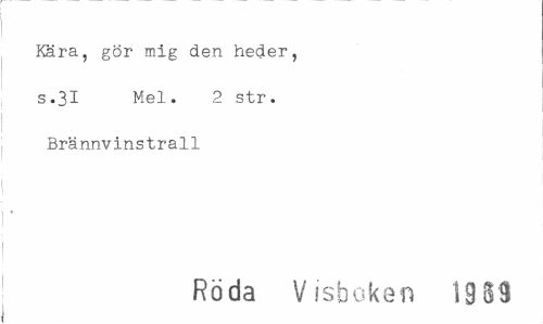 //// Kära, gör mig den heder, s.31 Mel. 2 str. Brännvinstrall //// Röda Visboken 19 §3 ////