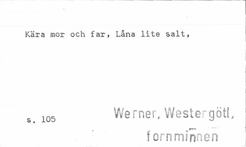 //// Kära mor och far, Låna lite salt, //// 105 Werner, Westergötl, //// fornminnen ////