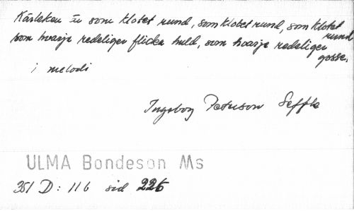 //// Ja?» Åttayi /ceA&ye* ^äcé* szon Jeay* //// ULMA Bondeson Ms //// J7//^ ////