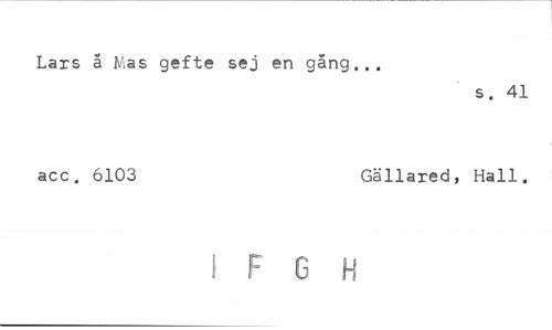 //// Lars å Mas gefte sej en gång... //// s. 41 //// acc. 6103 Gällared, Hall. //// I F G H ////