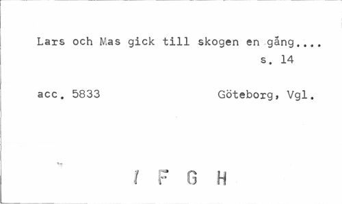 //// Lars och Mas gick till skogen en gång... //// s. 14 //// acc. 5833 Göteborg, Vgl. //// / F G H ////