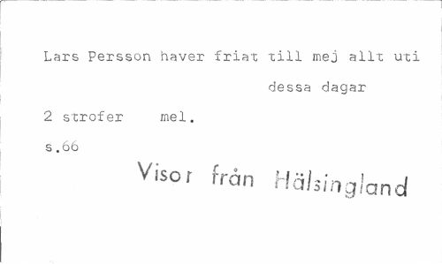 //// Lars Persson haver friat till mej allt uti //// dessa dagar //// 2 strofer mel. s .66 //// Visor från Hälsingland ////