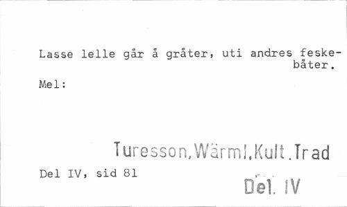 //// Lasse lelle går å gråter, uti andres feske- //// båter. //// Mel: //// Turesson,Wärml,Kult.Trad //// Del IV, sid 81 r . //// Del. IV ////