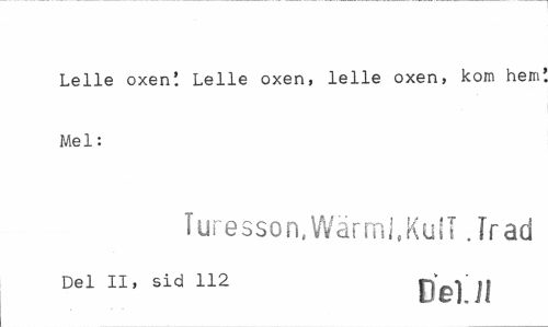 //// Lelle oxen! Lelle oxen, lelle oxen, kom hem Mel: //// Turesson, Wärmi.KuIT Jr ad //// Del II, sid 112 O©]']! ////