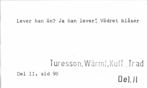 //// Lever han än? Ja han lever! Vädret blåser //// Turesson, Wärml,KulT Jr ad //// Del II, sid 98 //// Oel./I ////