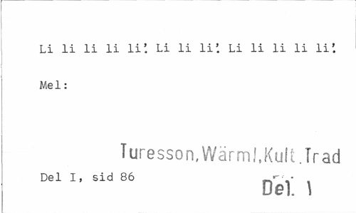 //// Li li li li li' Li li Ii'. Li li li li Ii'. Mel: //// Turesson, Wärml.Kult.Trad //// Del I, sid 86 • . //// Del \ ////