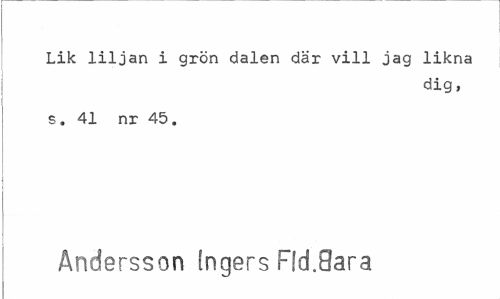 //// Lik liljan i grön dalen där vill jag likna //// dig, //// s. 41 nr 45. //// Andersson ingers Rd.Oara ////