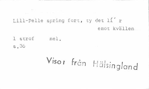 //// Lill-Pelle spring fort, ty det l£' r //// emot kvällen //// 1 strof mel. //// s . 36 //// Visor frnn P"J • i , //// Kalsmglcmd ////