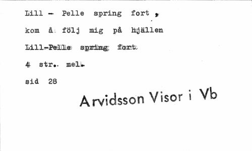 //// Lill — Pelle spring fort * kom å följ mig på Hjällen. Lill-Pelle spring fort. 4 str.. mel» sid 28 //// Arvidsson Visor i Vb ////