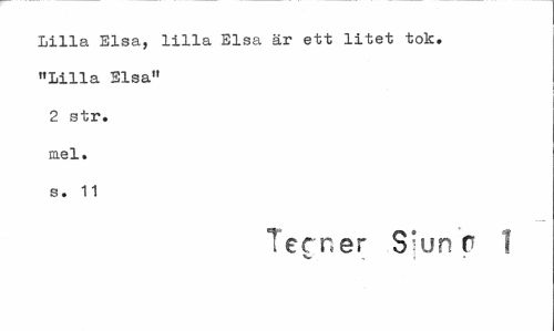 //// Lilla Elsa, lilla Elsa är ett litet tok. "Lilla Elsa» 2 str. mel. s. 11 //// Tern er S^un v 1 //// w , i ////