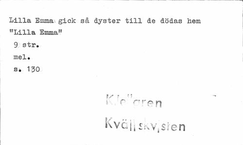 //// Lilla Emma: gick så dyster till de dödas hem "Lilla Emma" 9 str. mel. s. 130 //// fy* r ' //// k r cr&n Kvcjj ffvViSien ////