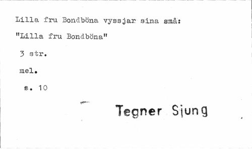 //// Lilla fru Bondböna vyssjar sina små: "Lilla fru Bondböna" 3 str. mel. s. 10 //// Tegner Sjung ////