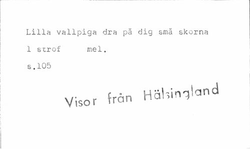 //// Lilla vallpiga dra pä dig smä skorna //// 1 strof mel. //// s.105 //// Visor från Halland ////