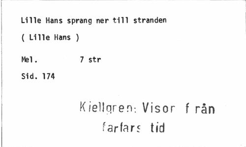 //// Lille Hans sprang ner till stranden ( Lille Hans ) //// Mel. 7 str //// Sid. 174 //// K/ellqren-. Visor f rån farfars tid ////