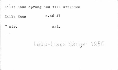 //// Lille Hans sprang ned till stranden Lille Hans s.46-47 //// 7 str. mel. //// tcipjj-ltsCo oanyei t& j U ////
