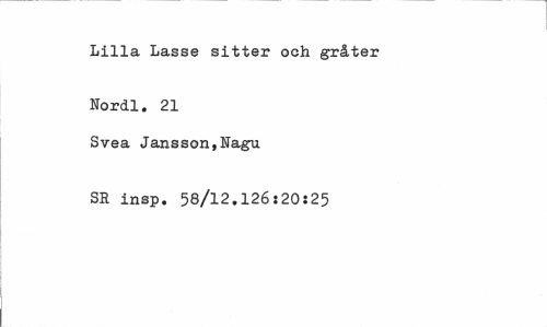//// Lilla Lasse sitter och gråter //// Nordl. 21 //// Svea Jansson,Nagu //// SR insp. 58/12.126:20:25 ////