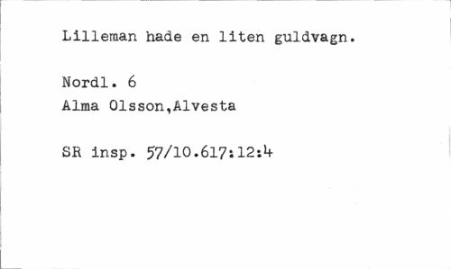 //// Lillenaan hade en liten guldvagn. Nordl. 6 //// Ålma Olsson,Alvesta SR insp. 57/10.6l7il2-.l+ ////