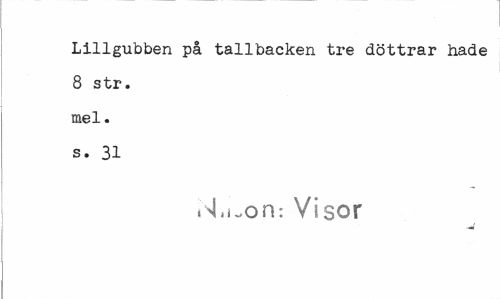//// Lillgubben på tallbacken tre döttrar hade 8 str. mel. s. 31 //// N.i-ort: Visor ////