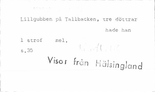 //// Lillgubben pä Tallbacken, tre döttrar //// hade han //// 1 strof mel. 6.35 //// Visor frän Hälsingland ////