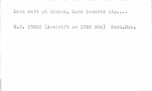 //// Lisa satt på bänken, Lars inunder låg... E.U. 23802 (Avskrift av IPG-H 868) Nord.Mus. ////