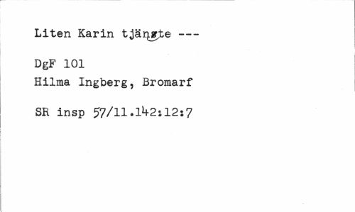 //// Liten Karin tjänsr-te--- //// DgF 101 //// Hilma Ingberg, Bromarf SR insp 57/11.1^2:12*7 ////