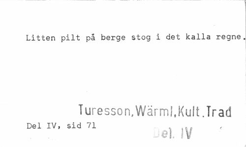 //// Litten pilt på berge stog i det kalla regne //// Turesson, Wärml,Kult.Träd //// Del IV, sid 71 . B //// - el. IV ////