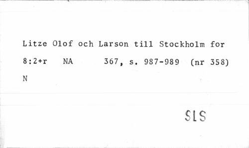 //// Litze Olof och Larson till Stockholm for 8:2+r NA 367, s. 987-989 (nr 358) //// N //// SLS ////