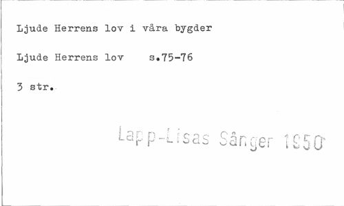 //// Ljude Herrens lov i våra bygder Ljude Herrens lov s.75-76 3 str. //// Lc , O- :$i C \p . r :n. ////
