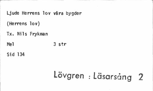 //// Ljude Herrens lov våra bygder (Herrens lov) Tx. Nils Frykman Mel 3 str //// Sid 134 //// Lövgren Läsarsång 2 ////