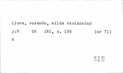 //// Ljuva, susande, milda västanvind //// 2:9 EN 281, s. 198 (nr 71) //// N //// SLS ////