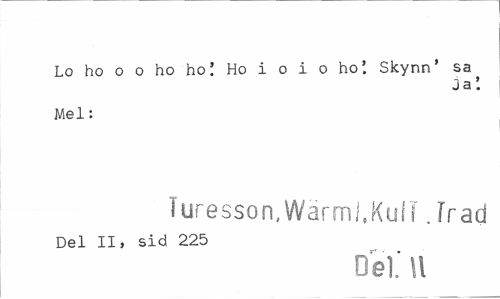 //// Lo ho o o ho ho! Ho i o i o ho'. Skynn' sa //// Ja'. //// Mel: //// Turesson, Wärml,KuJT Jr ad //// Del II, sid 225 //// Del," U ////