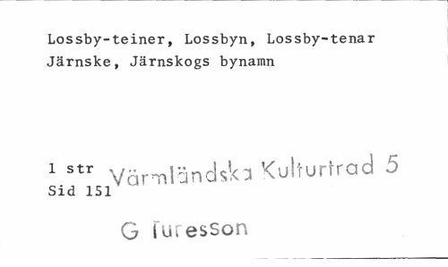 //// Lossby-teiner, Lossbyn, Lossby-tenar Järnske, Järnskogs bynamn //// 1 str Värmländska Kulturirad 5 //// Sid 151 //// G iuresSon ////