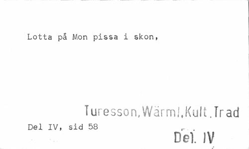 //// Lotta på Mon pissa i skon, //// Turesson, Wärml, Kult. Tr ad //// Del IV, sid 58 //// Del IV ////