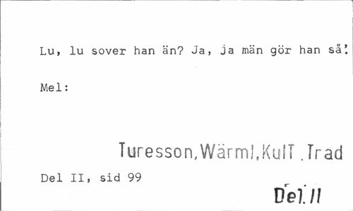//// Lu, lu sover han än? Ja, ja män gör han så'. Mel: //// Turesson,Wärml.Kuil .Träd //// Del II, sid 99 //// DBill ////