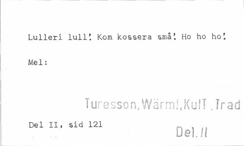//// Lulleri lull'. Kom kossera små'. Ho ho ho'. Mel: //// Turesson,Wärml.KulT. Trad //// Del XI, sid m De)/( ////