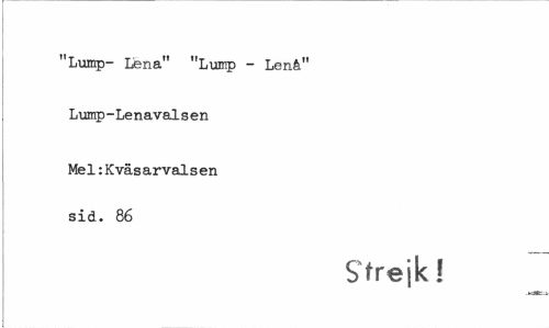 //// "Lump- Lena" "Lump - Lenå" Lump-Lenavalsen //// Me1:Kväs arvals en sid. 86 //// Strejk! //// -iujfc ////